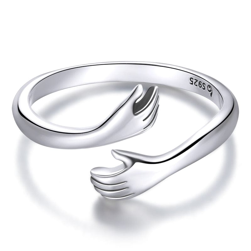 Wrap your love around their finger with our 925 Sterling Silver Hug Ring. This meaningful piece features two hands hugging. symbolizing the unbreakable bond that you share. Made from premium sterling silver. this ring will last a lifetime as a reminder of your love. Whether it's for an anniversary. Valentine's Day. or just because. this Hug Ring is the perfect way to show your special someone just how much they mean to you.