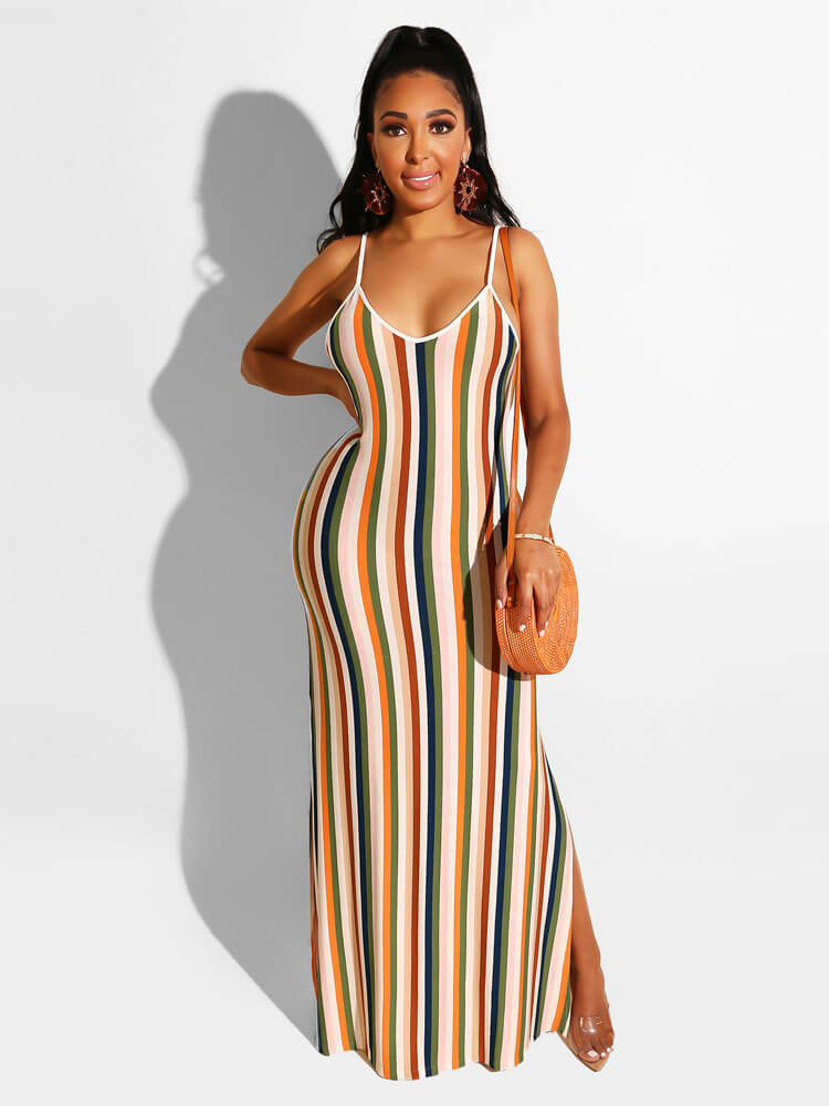 Bunt gestreifte Spaghettiträger-Kleider mit Kordelzug