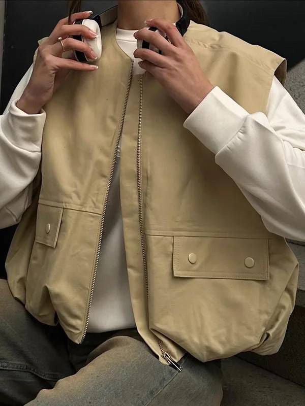Bleiben Sie stilvoll und bequem in unserem trendigen, lockeren, ärmellosen, lässigen Tanktop mit Tasche.