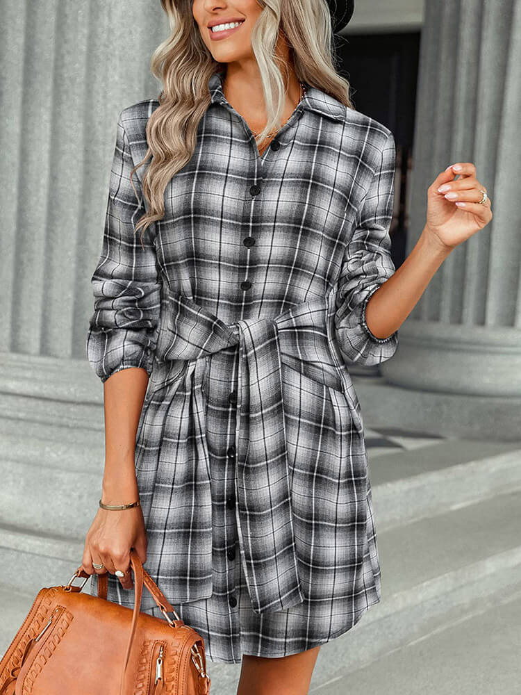 Merkmale: Langarm, kariert, Button-Down, Schnürung, Hemdblusenkleider.