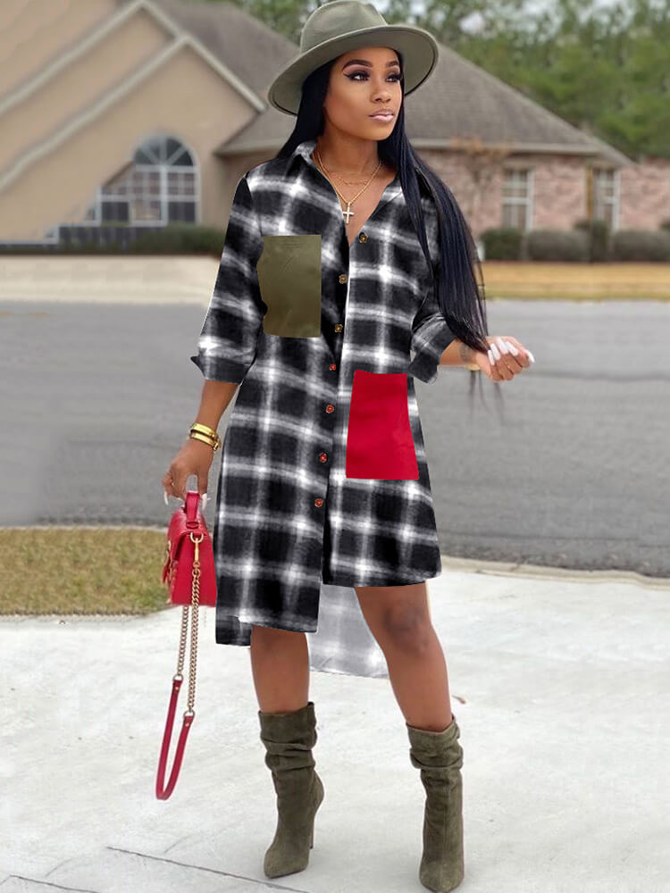 Merkmale: Kariert. Asymmetrisch. Langarm. Patchwork. Button-Down. Kragen. Figurbetont. Farbblock. Minikleider.
