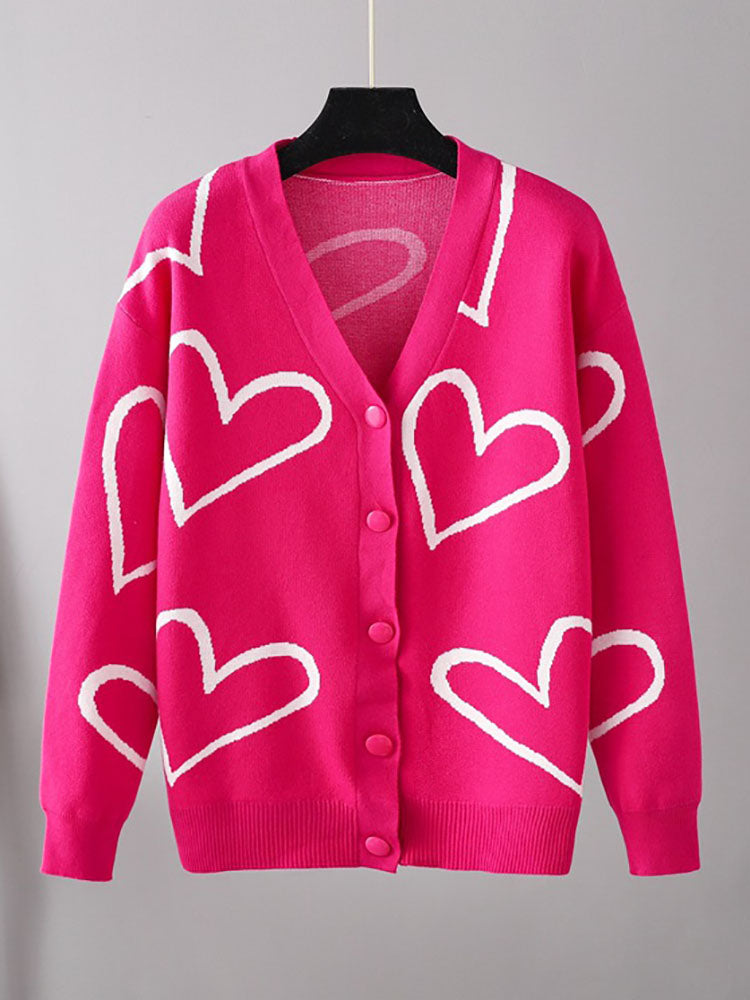 Merkmale: Lange Ärmel. Knopf. Herzaufdruck. Rippstrick. Lockere Mäntel.