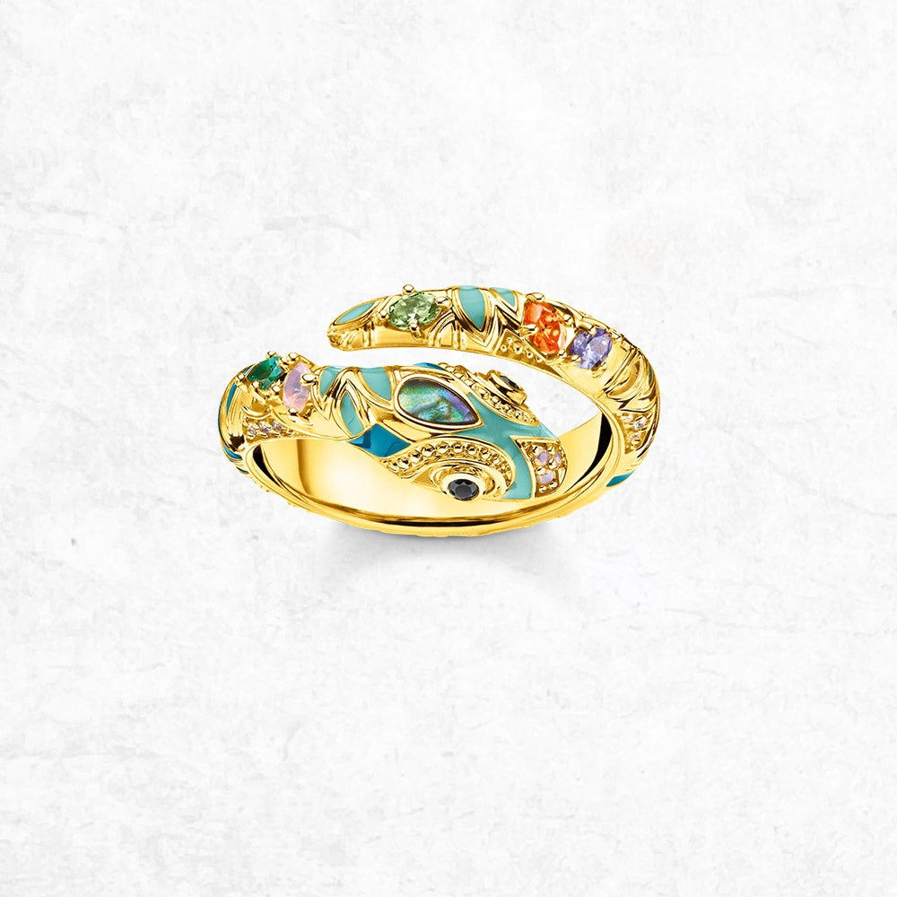 Unveil the enchantment of the 'Magical Snake 925 Sterling Silver Ring.' a piece where opulence meets legend. This serpentine treasure wraps gracefully around the finger. its scales brought to life with a kaleidoscope of zircon gemstones set in lustrous gold-plated silver. promising to be a spellbinding addition to your jewelry collection.