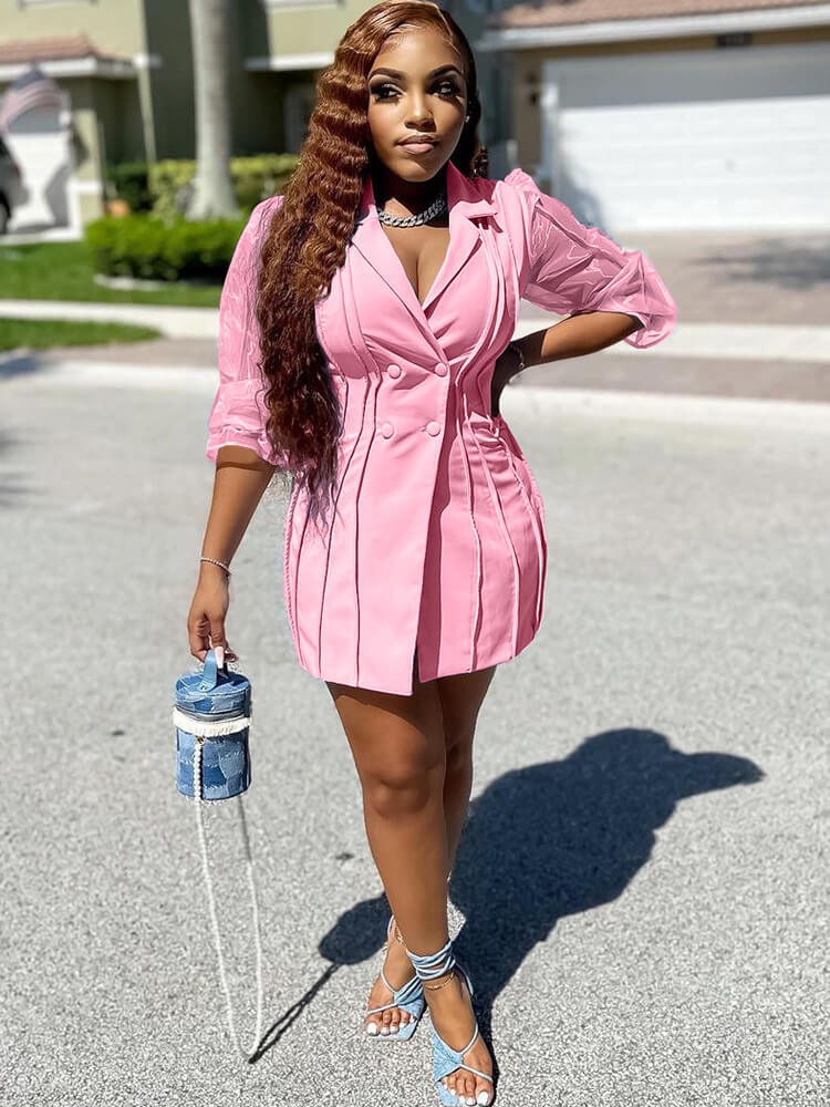 Eigenschaften: Lässig. Minikleider. Figurbetont. Lockere Passform. Bluse mit Knopfleiste. V-Ausschnitt. Bischofsärmel aus Netzstoff.
