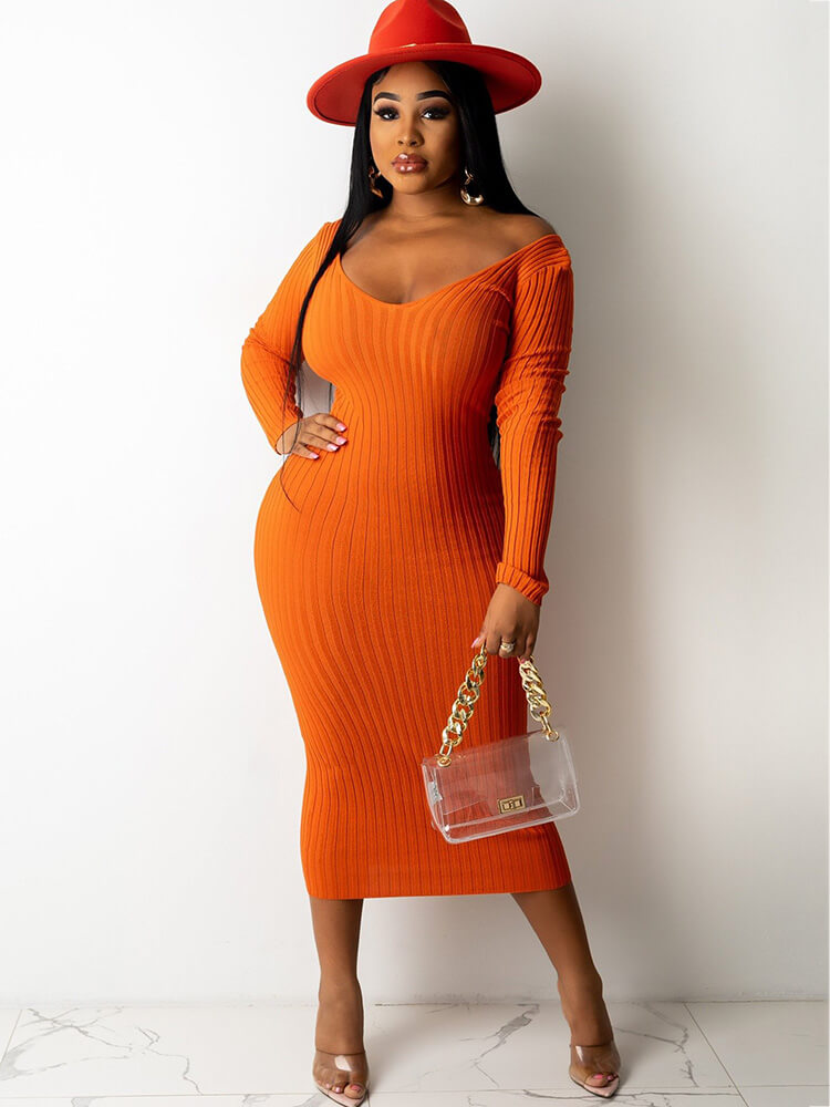 Merkmale: Schulterfreies Midikleid. Schmales Bleistiftkleid. Tiefer V-Ausschnitt. Einfarbiges, figurbetontes Strickkleid. Sexy Pulloverkleid. Clubkleid. Hohe Taille. Rückenfrei. Maxikleid. Langes Kleid zum Ausgehen. Partykleid. Gerippte Clubwear.
