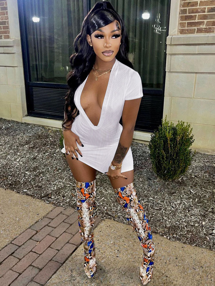 Eigenschaften: Ärmellos. Tief ausgeschnitten. Einfarbig. Reduziert. Asymmetrischer Saum. Figurbetont. Minikleid.