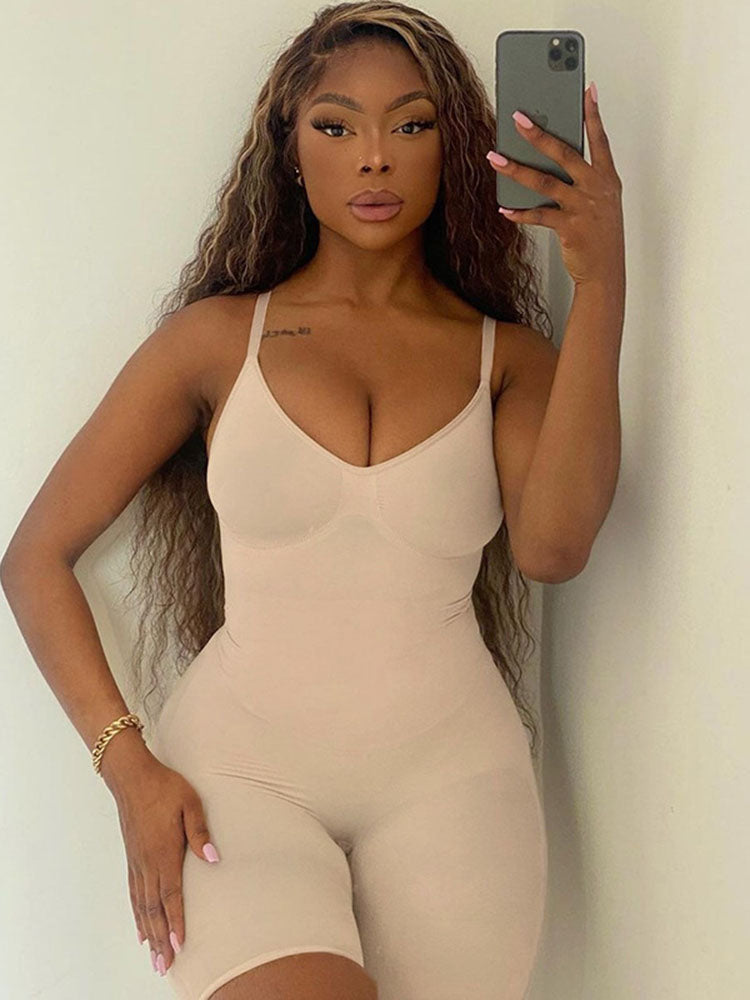 Eigenschaften: Ärmellos. Spaghettiträger. Einfarbig. Shorts. Figurbetonter Strampler.