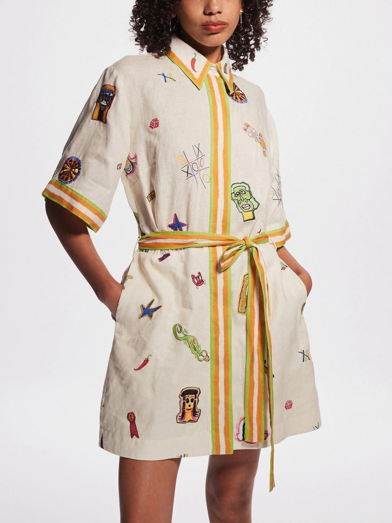 Dieses Kleid kombiniert den zeitlosen Reiz eines klassischen Hemdblusenkleides mit einem modernen Mini-Stil und ist damit ein vielseitiges Stück in Ihrer Garderobe.