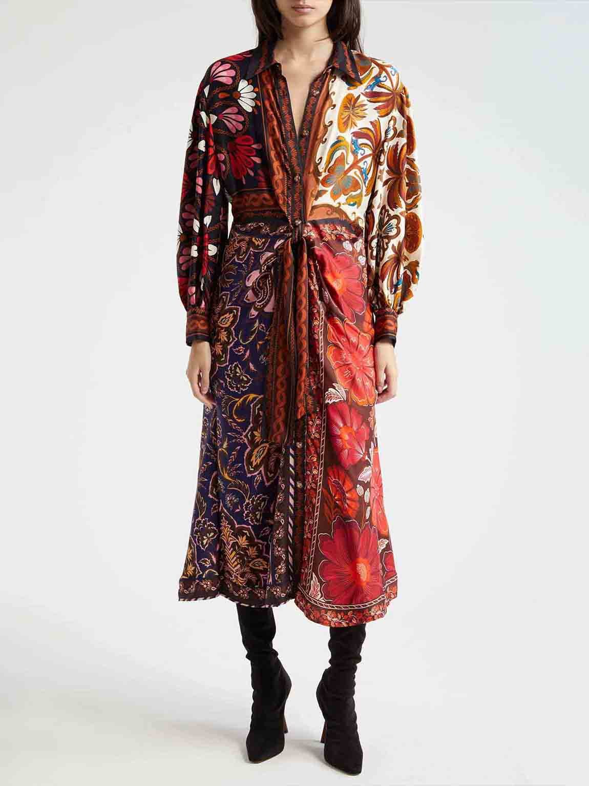Bezaubernder Blumendruck: Mit Vintage-inspirierten Blumen und einem Design im Hemdstil verströmt dieses Kleid einen Hauch von romantischem Charme und zeitloser Schönheit.