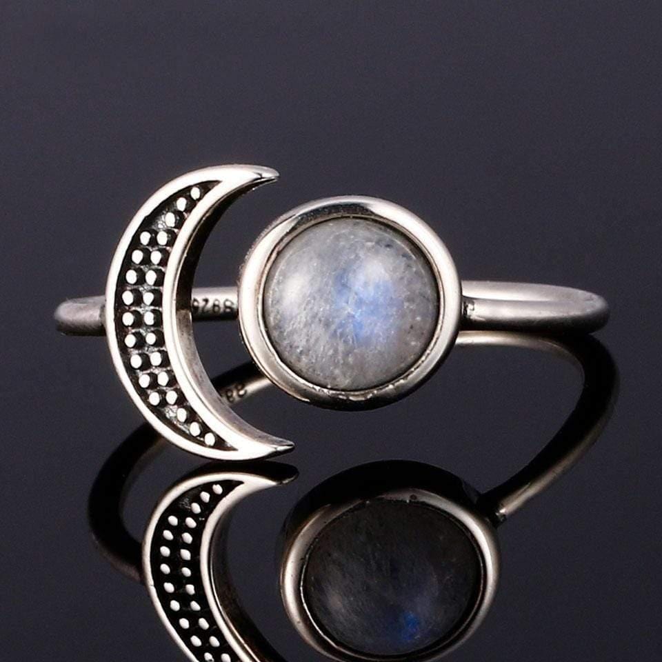 About: This beautiful bohemian 925 Sterling Silver Moon ring is handmade with a natural Moonstone semi-precious gemstone. This ring is adjustable (can fit US sizes 5 to 10).