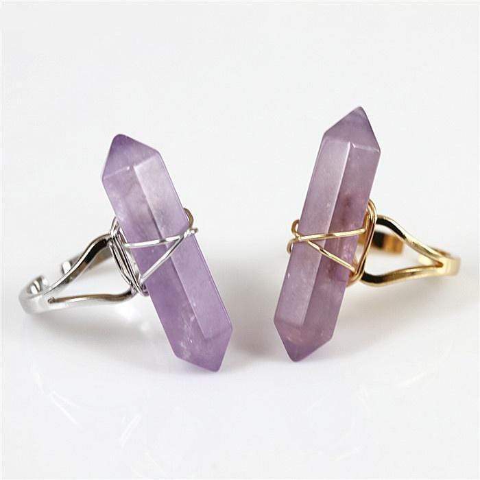 About: A statement purple amethyst double point crystal sits on a silver/gold plated adjustable ring. Stand out with this beautiful wire wrapped fluorite quartz ring. Perfect for wearing with anything and everything this season. Each ring has a natural amethyst stone but each crystal is unique so may vary in color. You're sure to turn heads with this bohemian crystal beauty!
