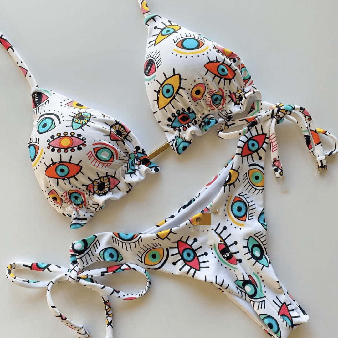This bikini set has a soft fabric and a low-rise style bottom. with a wire free bra and a regular fit. making it perfect for the beach.