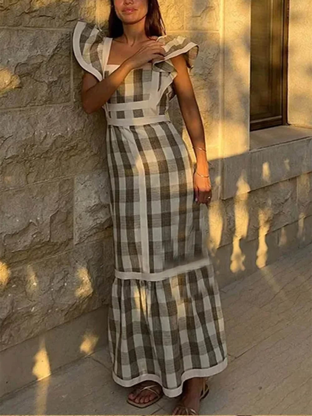 Hecho de tela de primera calidad, este vestido es suave y transpirable, ideal para usar todo el día. Su exclusivo estampado de cuadros le da un toque de personalidad. Su corte ajustado garantiza una comodidad excepcional.