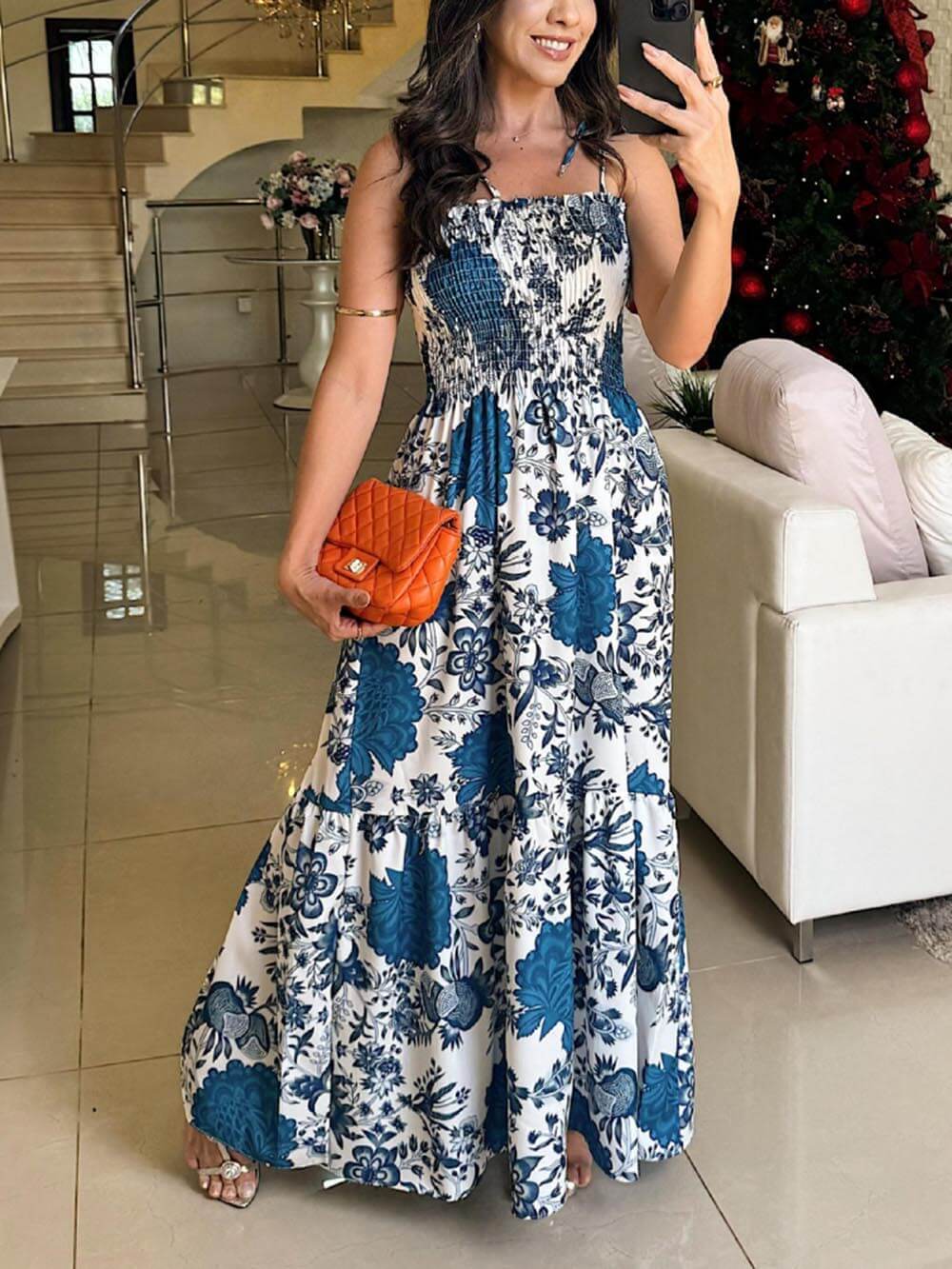 Vístase con estilo y comodidad con nuestro sofisticado y elegante vestido largo plisado con estampado floral.