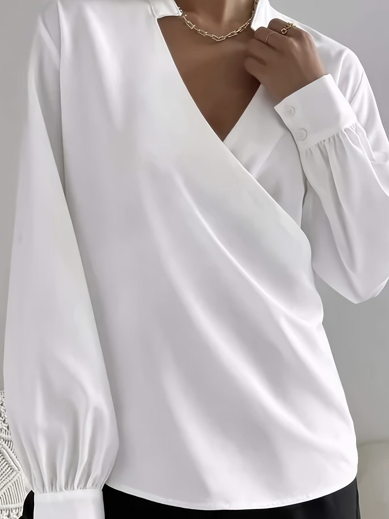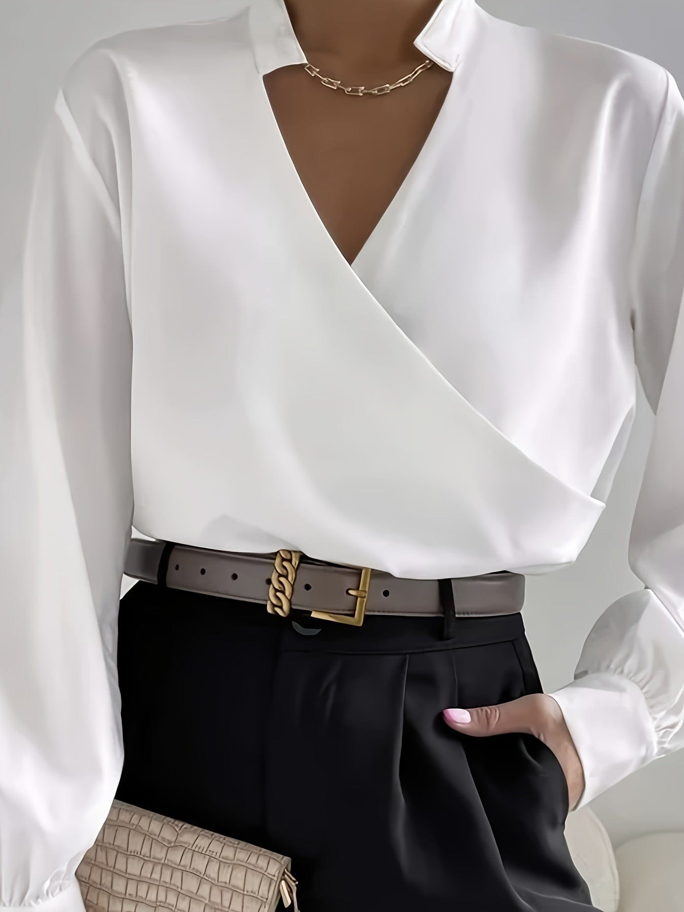 Refine your wardrobe with this Elegant Notched V-Neck Shirt. designed for a sleek and polished look. Featuring a modern notched collar and a flattering V-neckline. this blouse offers effortless sophistication for both professional and casual settings. Crafted from 100% polyester. it provides a lightweight. breathable feel without elasticity. ensuring a structured yet comfortable fit.