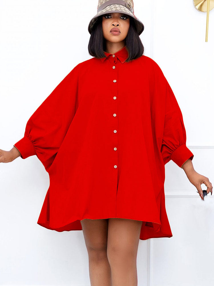 Características: Manga larga. Solapa. Abotonado. Color sólido. Vestido camisero mini suelto.