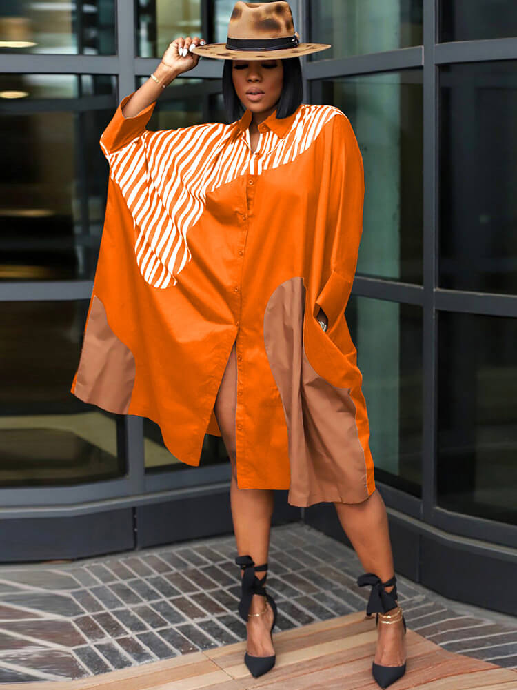 Característica: Manga larga. Bloques de color. Patchwork. Cuello. Botones. Estampado de rayas. Casual. Minivestido camisero. Su estilo único te hace lucir a la moda. Sexy y encantadora.