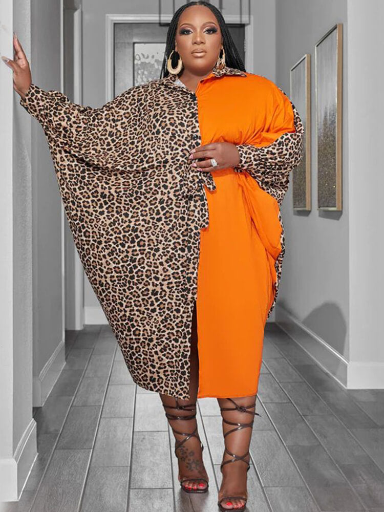 Característica: Manga larga. Estampado de leopardo. Bloque de color. Cuello en V. Cuello. Lazado. Parches. Ajustado. Vestidos midi.