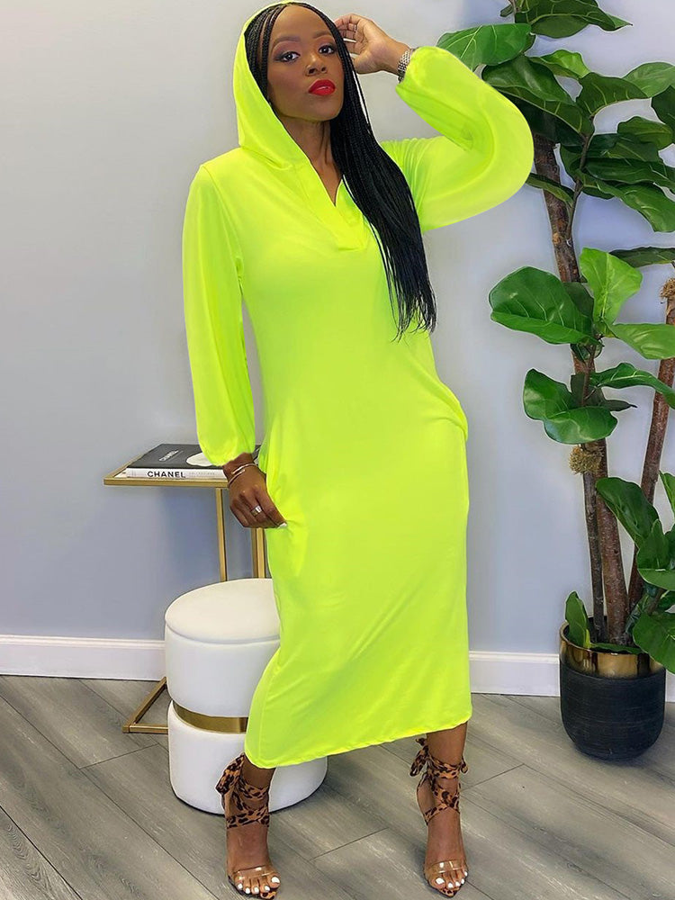 Características: Con capucha. Estiliza el cuerpo. Color liso. Cuello en V. Mangas largas. Vestido largo. Jersey. Ahuecado. Roto.