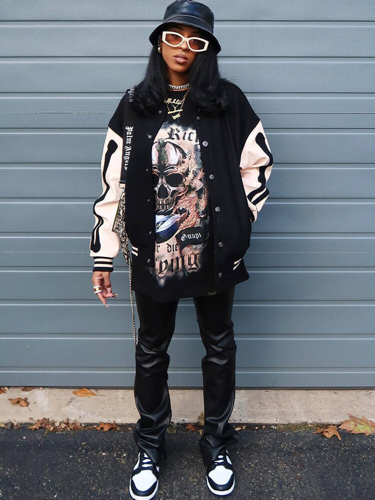 Chaquetas de béisbol de manga larga con estampado de esqueleto