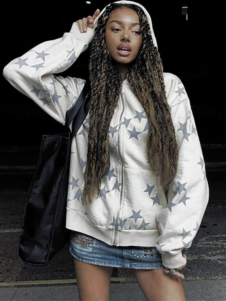 Chaquetas de manga larga con cremallera y estampado de estrellas