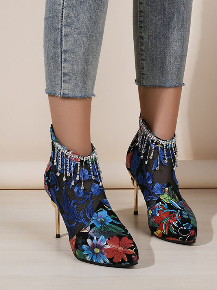 Botas de tacón con bordado de malla compacta