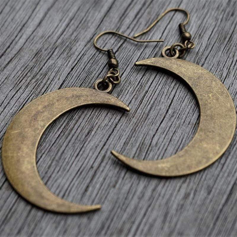 About: Hook earrings with a gold-tone and silver-tone look. Finished with moon pendant accents