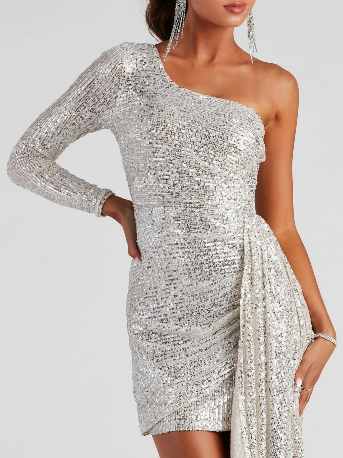 Características: Lentejuelas. Brillo. Sin mangas. Espalda descubierta. Sexy. Entallado. Cierre con cremallera. Corte ajustado. Hombros descubiertos. Patchwork. Minivestido. Fruncido. Vestido tubo. Este vestido te hace lucir a la moda, sexy y encantadora.
