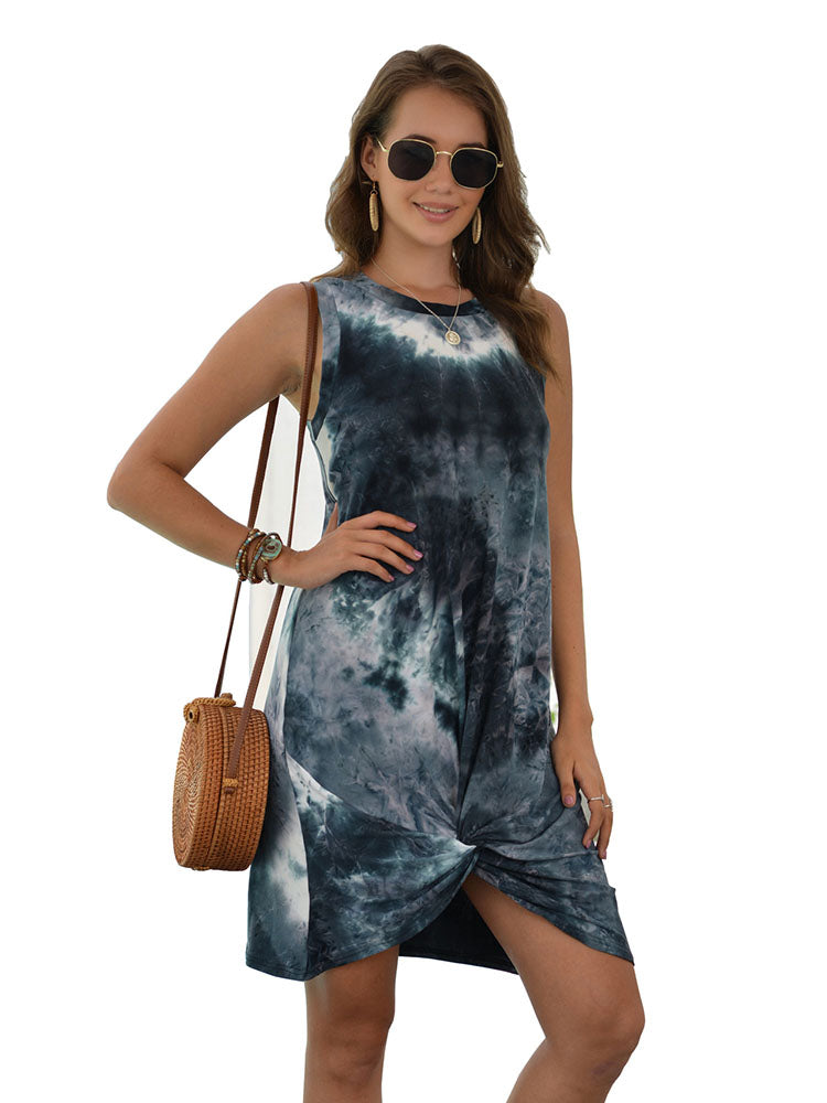 Características: Sin mangas, con efecto tie-dye, cuello redondo, fruncido y minivestidos.