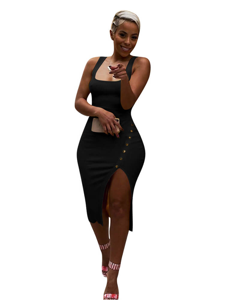 Minivestidos de club sin mangas de color liso con cuello cuadrado