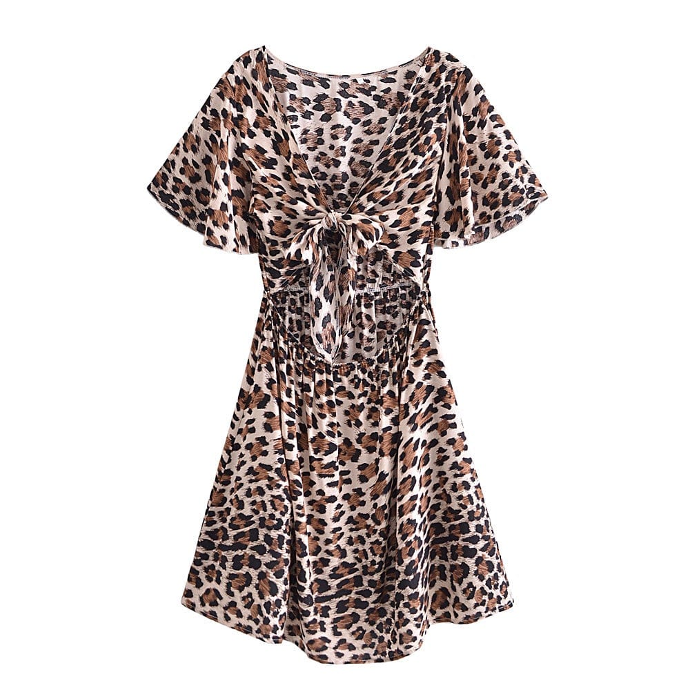 About: This timeless mini dress is designed with a staple. short sleeve silhouette and gorgeous animal print with a v-neckline around the breast for added dimension.
