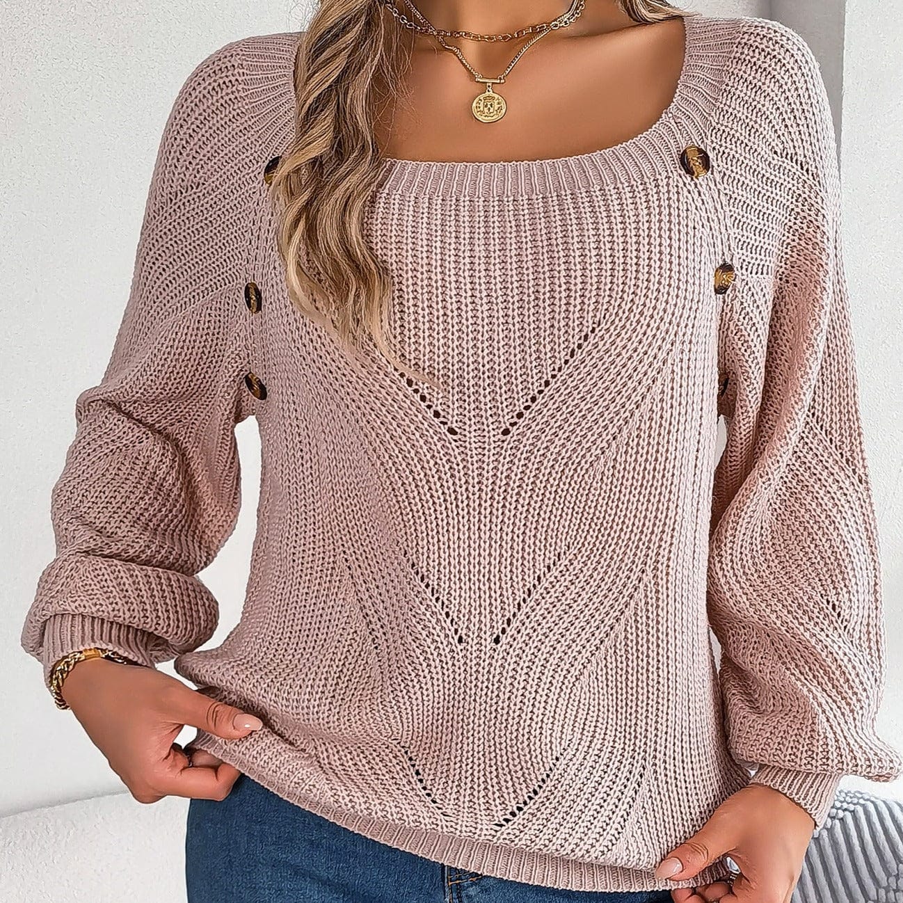 Look cute without sacrificing comfort in this stylish Antigone Sweater! Made of soft jersey fabric. it has a loose fit. square neck. and long sleeves that will make you want to stay curled up on the couch for days. With a playful decorative button and regular top length. you'll look stylish and feel cozy!
