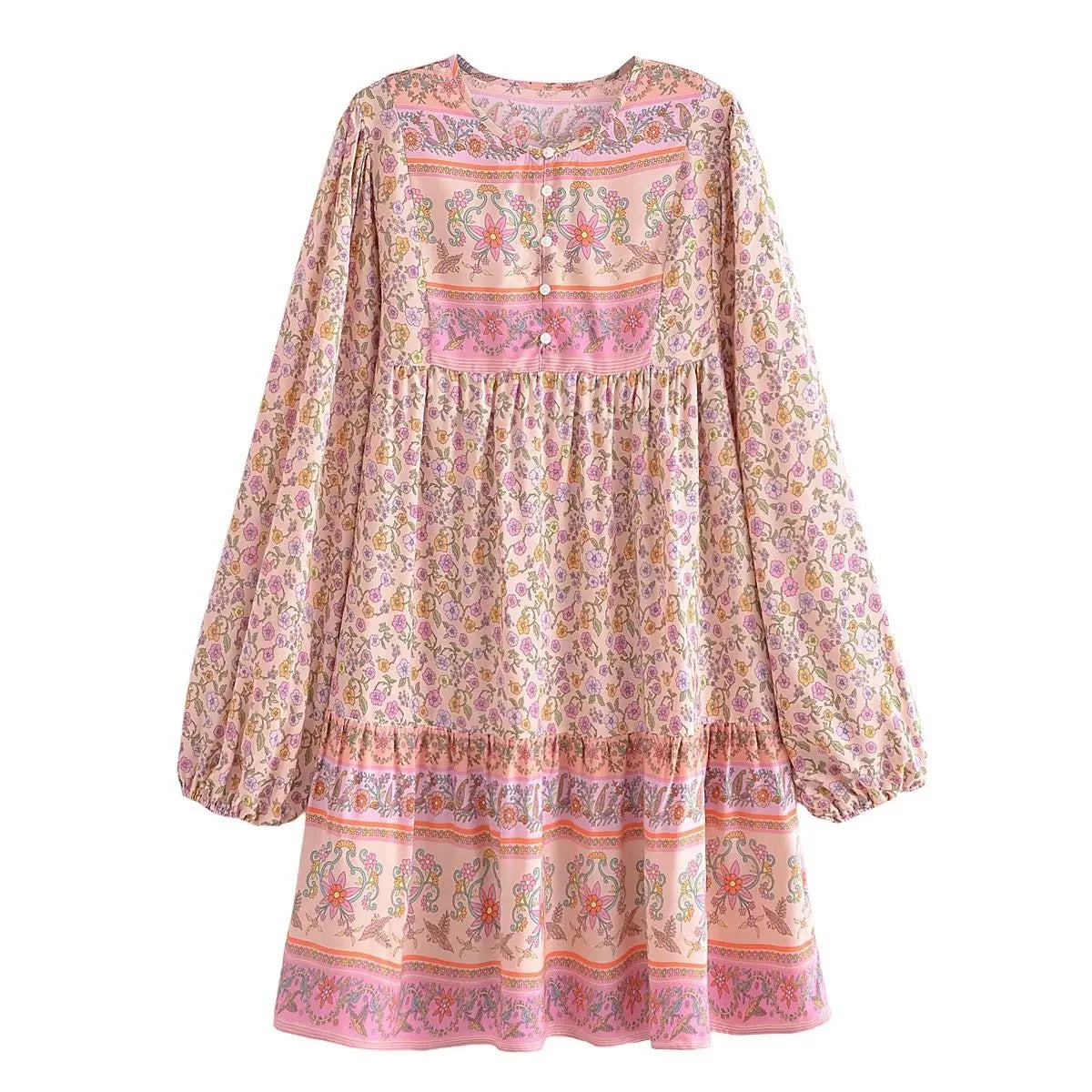 Flirty Cabella Floral Mini Dress in a breezy. flowy silhouette. Charming floral print dress with long sleeves and delicate detailing. perfect for adding a touch of elegance to your casual outings.