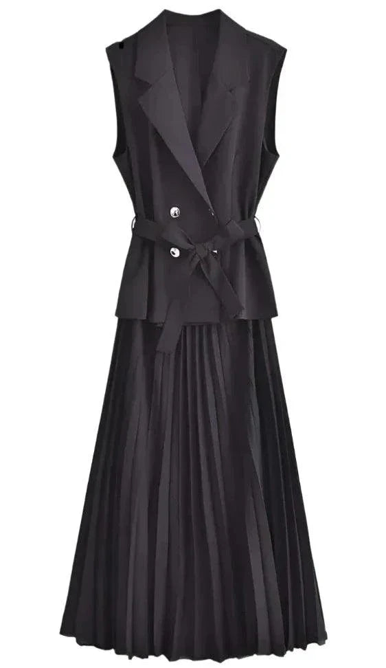 Upgrade your wardrobe with our Chic Women's Pleated Vest Style Long Dress. Made from a luxurious cotton blend. this A-LINE silhouette and mid-calf length dress is perfect for any occasion. Its non-stretch elasticity provides a comfortable fit. while the regular sleeve style adds an elegant touch. Notched neckline and pullover closure make it easy to wear.