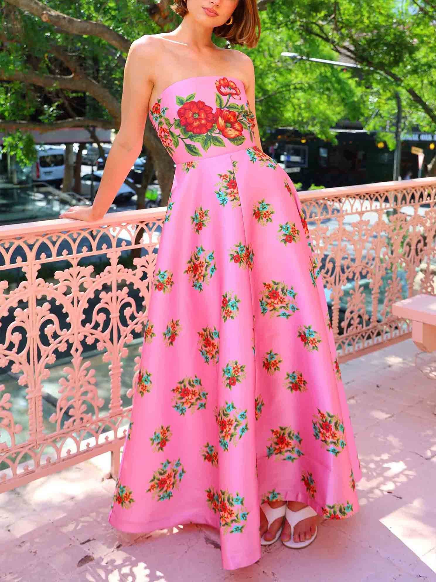 Featuring a beautiful floral print and a flattering A-line silhouette. this stunning dress is perfect for creating an elegant and feminine look for any occasion.