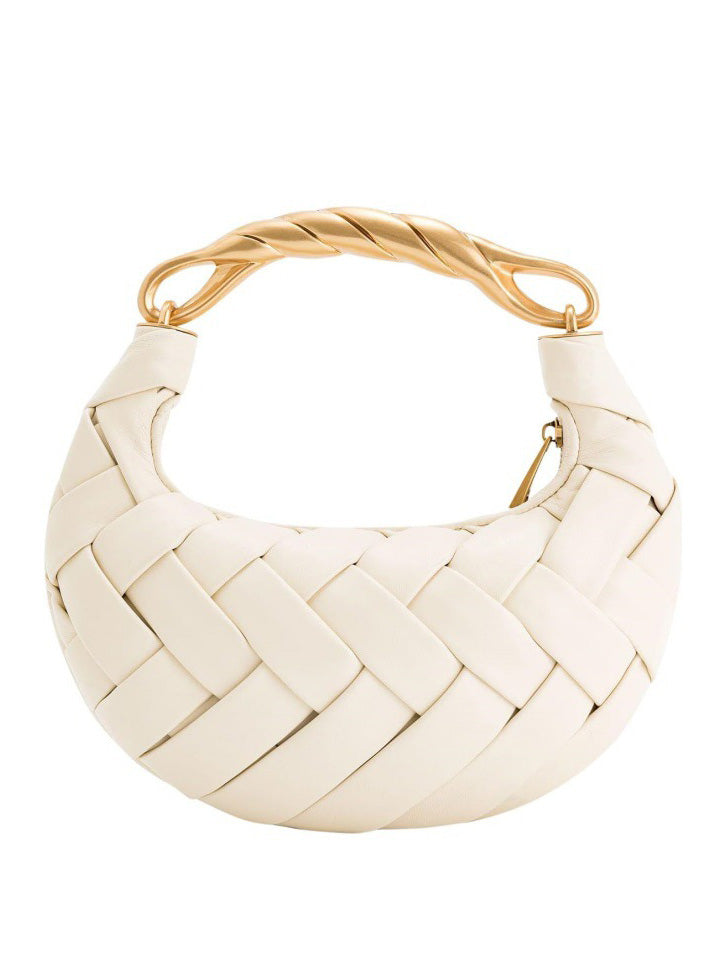 Elevate your style with the Metal Handle Woven Shoulder Bag. Featuring delicate woven details and a unique metal handle design. this bag adds a touch of glamour to any outfit.