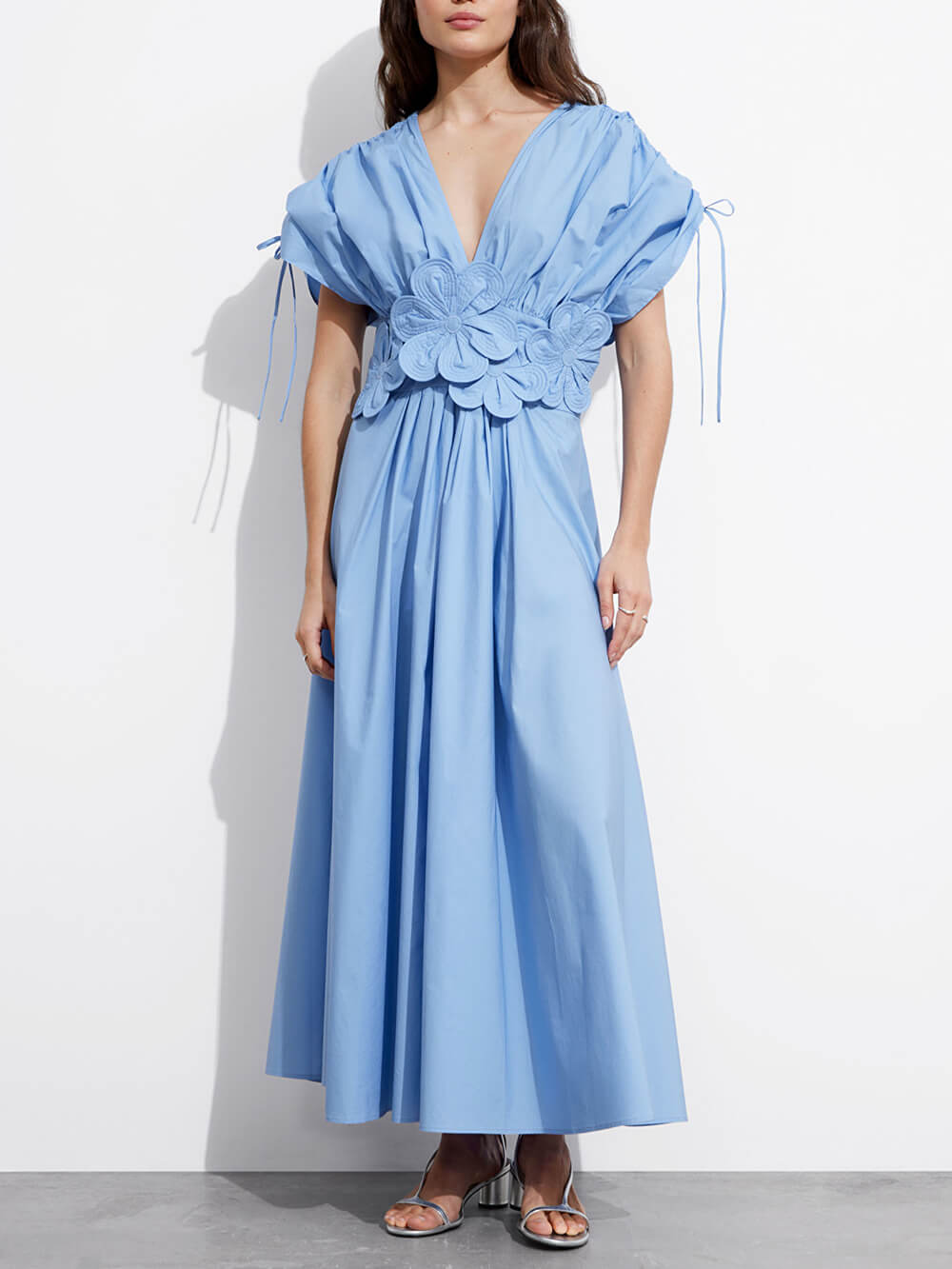 Exquisite Floral Appliques: Beautiful floral appliques adorn the dress. adding a touch of whimsy and elegance to your look.