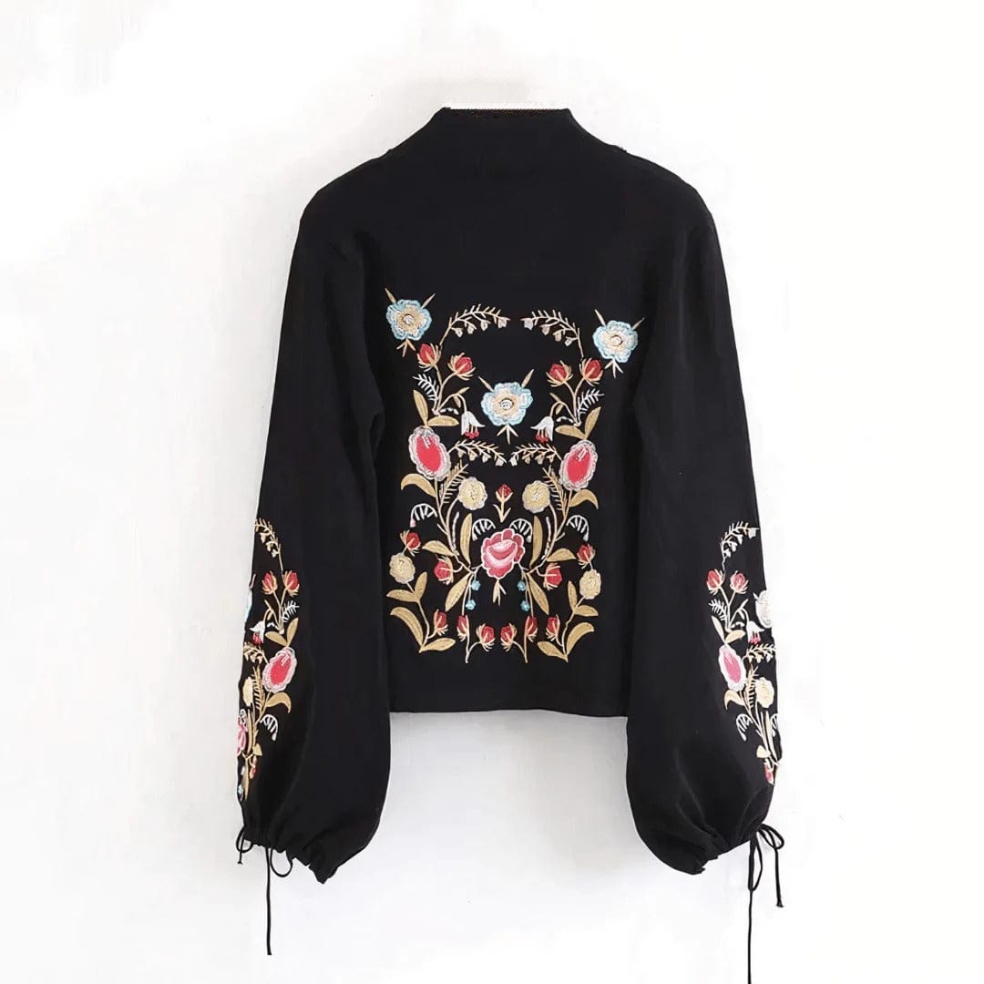 About: Beautiful embroidered sweatshirt with colorful floral embroidery. perfect for the autumnal fall months to throw over a pair of jeans or to pair with a cute skirt and heels. Complete with drawstring lantern sleeves and a cute floral embroidered front and back.