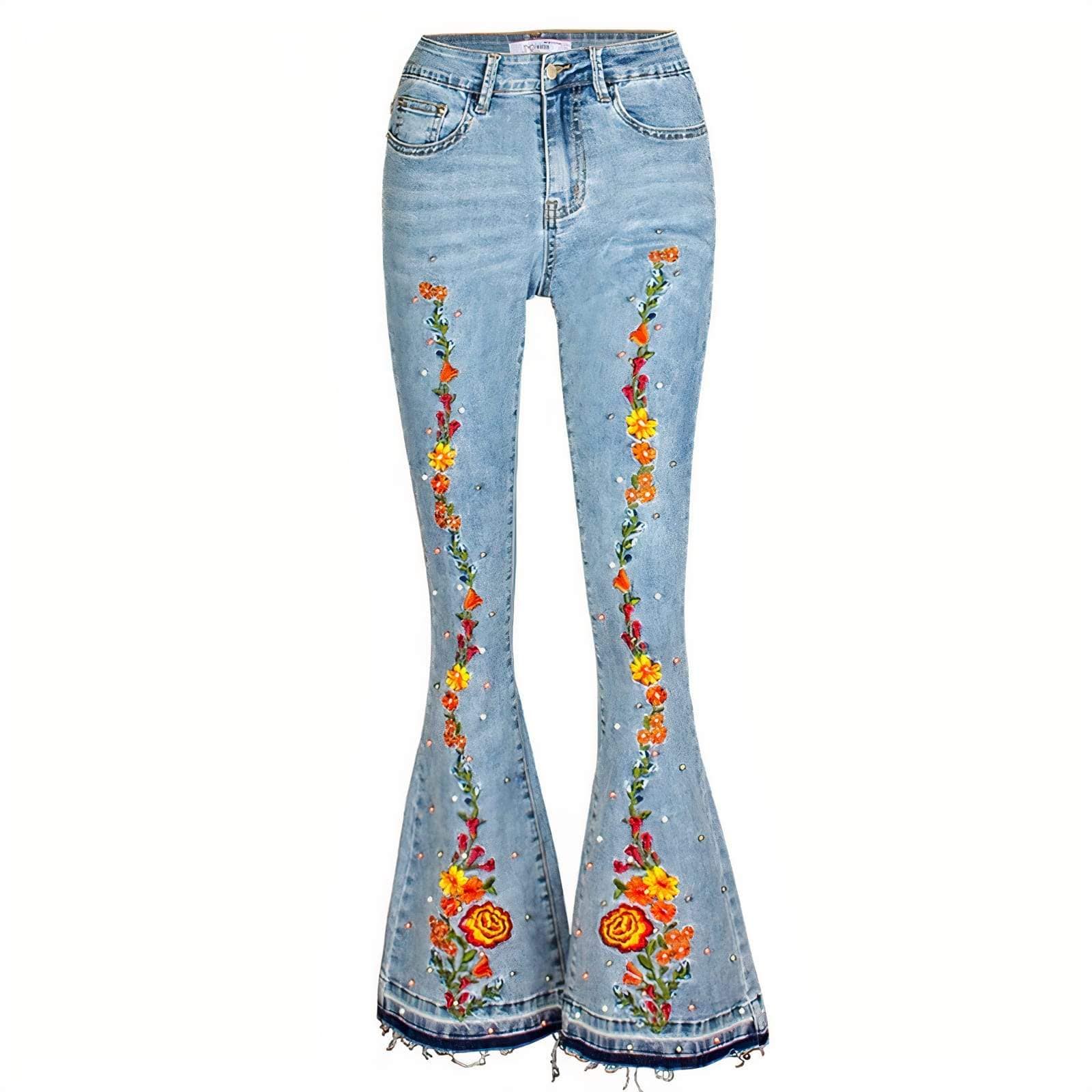 About: These floral vintage style jeans have a staple silhouette and true denim fabrication for timeless elegance no matter the season and are forever flattering in a retro-inspired flare silhouette.