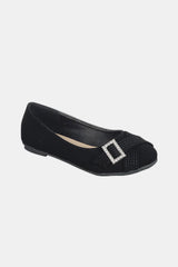 Slip-on rhinestone buckle ballet flats add a touch of glamour to any outfit. The sparkling buckle detail enhances their classic design. making them perfect for both casual and dressy occasions. Crafted for comfort. these flats are easy to wear all day long. Their versatile style allows them to be paired with everything from jeans to dresses. Step into elegance with these chic and eye-catching ballet flats!