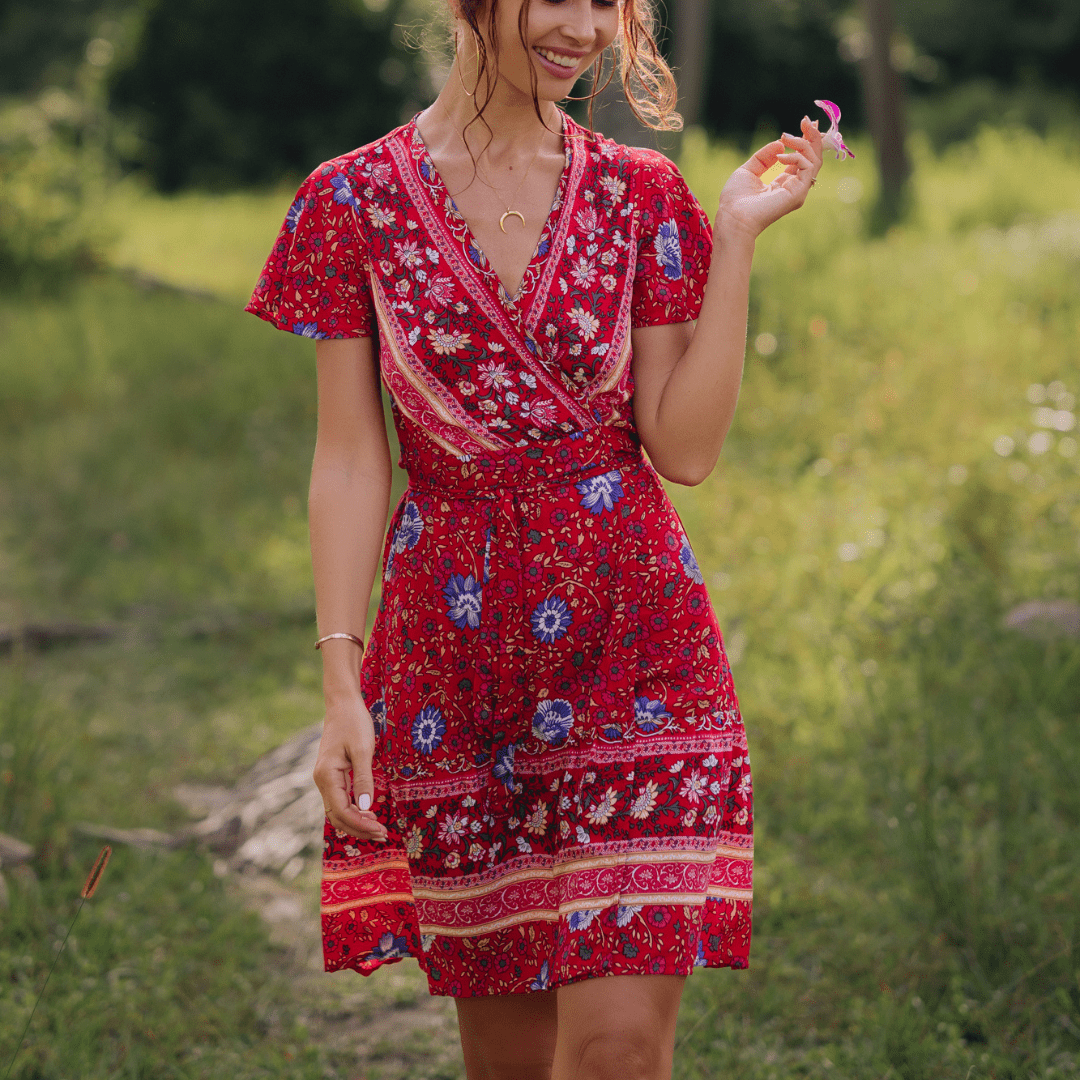 This effortless floral wrap mini dress will be your go to outfit for any day occasion you have planned. Our Ida Floral Dress adds an element of comfort with the wrap design and fabric as well as warmth with its stunning print and ruffle detail at the bottom of the skirt and v-neckline. This easy-to-wear piece speaks for itself. style it simply with tan slides for a beach picnic or dress it up for your next event with simple heels and statement jewels.