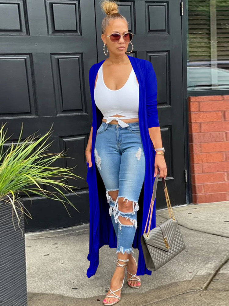Features:Long sleeve. solid color. long cardigan.