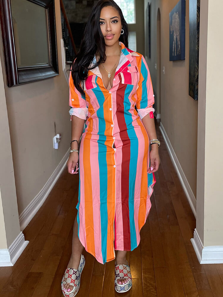 Feature: Long Sleeve. striped. button down. collar. v-neck. color block. bodycon. long shirt. irregular midi dresses. long coats.