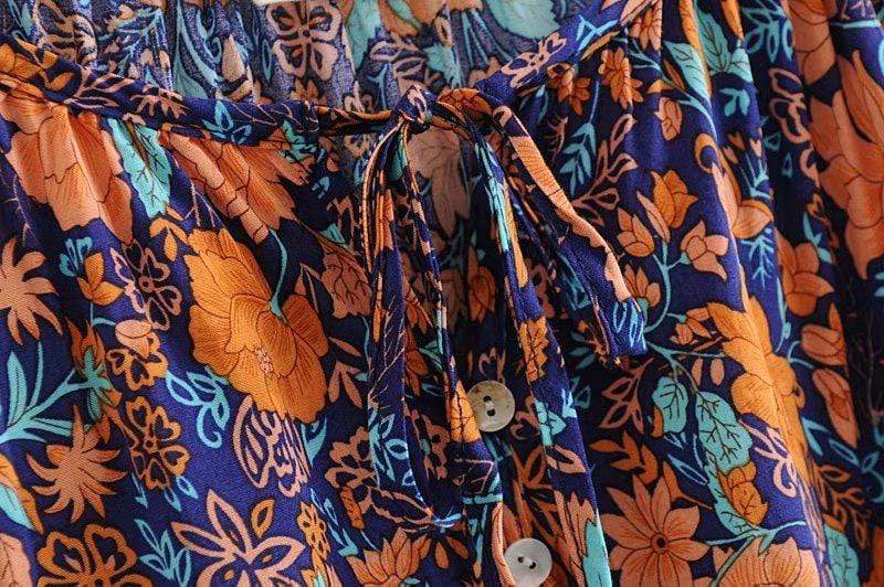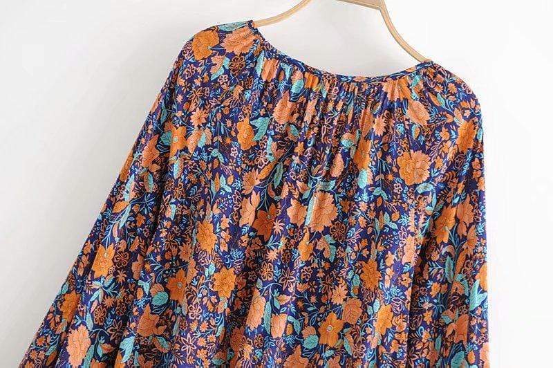 • Round neckline with keyhole cutout at front with hanging tie & brass bead