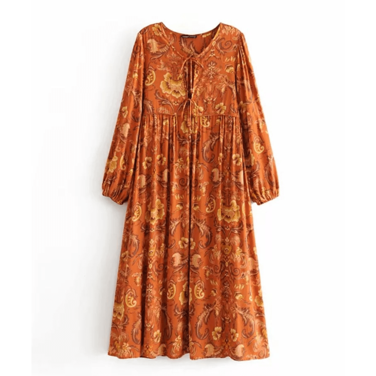 About: This timeless midi boasts a feminine V-neckline and lace-up silhouette with flattering floral details for extra form from our Boho Love Collection.
