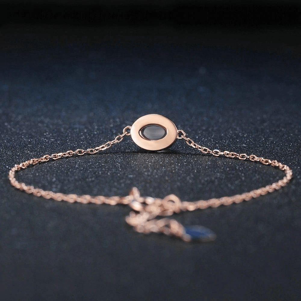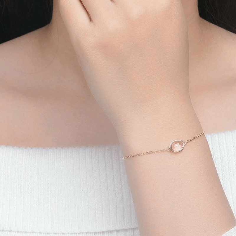 Rose Quartz Sterling Silver S925 Oval Charm Bracelet