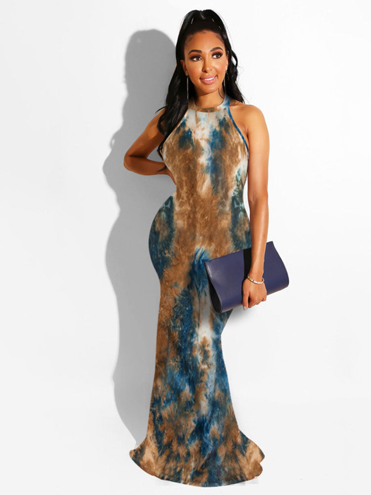 Features:Sleeveless. cut-out. print. maxi dresses.