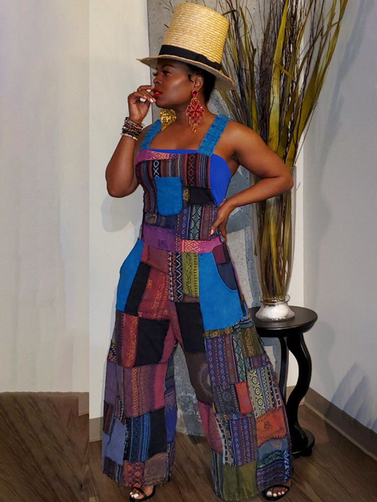Features:Sleeveless. figure print. plaid. patchwork. wide-leg. long pants. overalls. one-piece rompers.