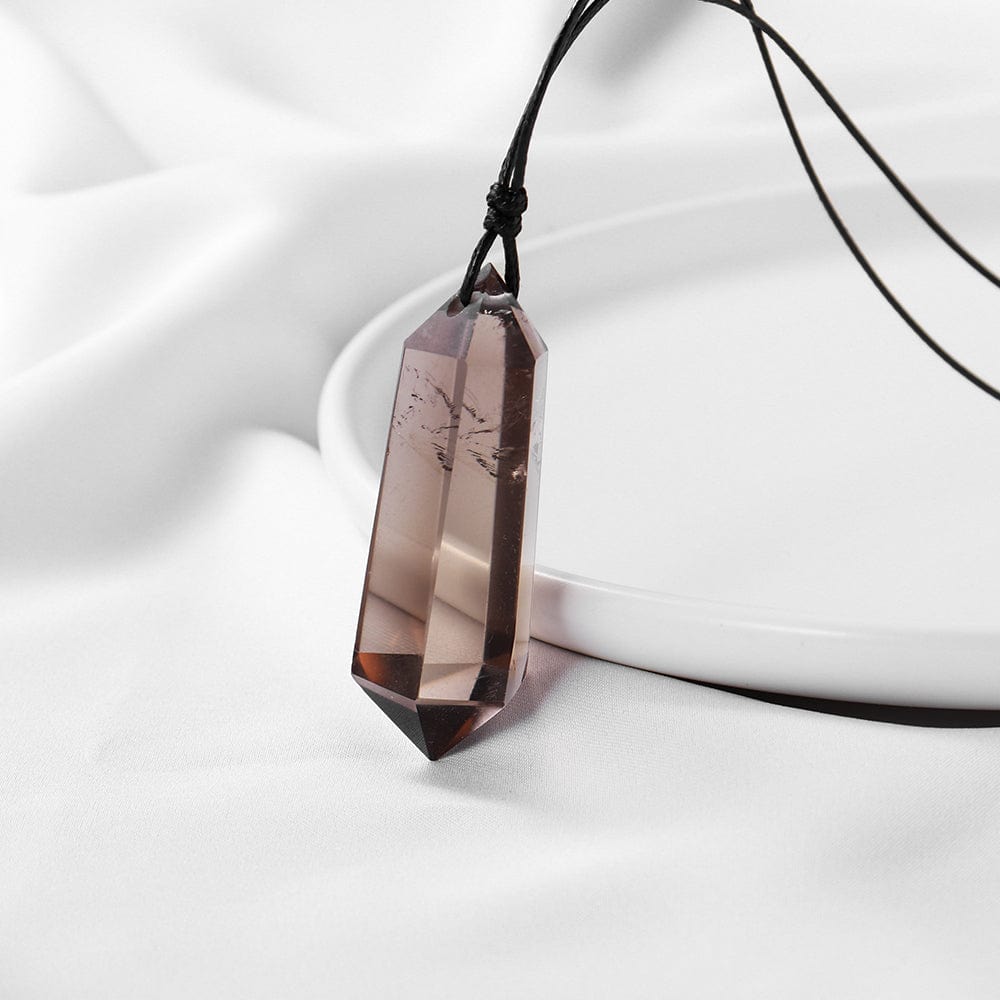 When life throws you shade. throw it right back with the Smoky Quartz Crystal Pendant Necklace. a powerful grounding and balancing stone that shares an equally shady aesthetic. This powerful Smoky Quartz Crystal Pendant Necklace is a super-charged variation of the extensive Quartz group of crystals. but with a distinctive twist. It gets its wispy hints of brown from exposure to natural underground radiation from granite deposits. giving Smoky Quartz Crystal Pendant Necklace an added punch of celestial vibrations.