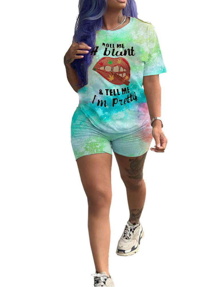 Features: Cartoon tracksuit Short sleeves. t-shirt. elastic waist shorts pants. tie-dyed printed. slim fit. sport bodycon hot pants. sexy two piece jogger sportswear set.